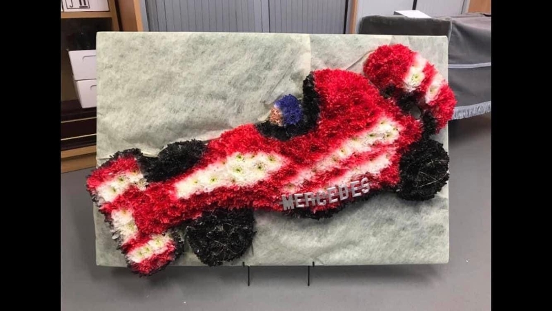 This has been designed on an oasis design board and shaped to form a racing car. Please phone us to discuss your requirments. We can provide any shape you are looking for. Prices will vary.